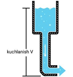 Agar biz bitta uzun quvurni olib, uni yerga qoʻyib va suv bilan toʻldirsak, suv quvurni ikkinchi tarafidan kuchsiz chiqadi. Agar biz quvurni uchlaridan birini koʻtarsak suv katta kuch bilan chiqadi. Balandlikda farq qancha katta boʻlsa, quvur chiqishida bosim kuch shuncha koʻp boʻladi. Kuchlanishni yuqoridan pastga tushayotgan suvga (masalan yuqoridan tushayotgan sharshara) qiyoslasak boʻladi.